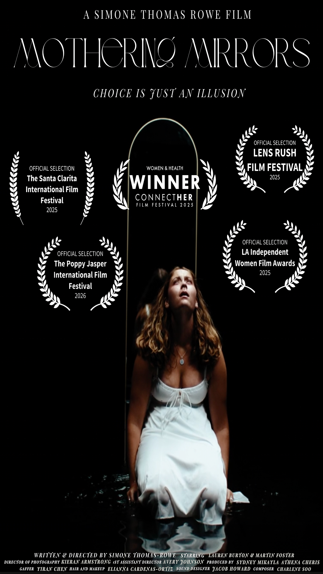 Mothering Mirrors After accidentally ending up at a fake abortion clinic, a young girl must face a difficult and realistic decision about whether or not she is ready to become a mother.Written and Directed by Simone Thomas-Rowe